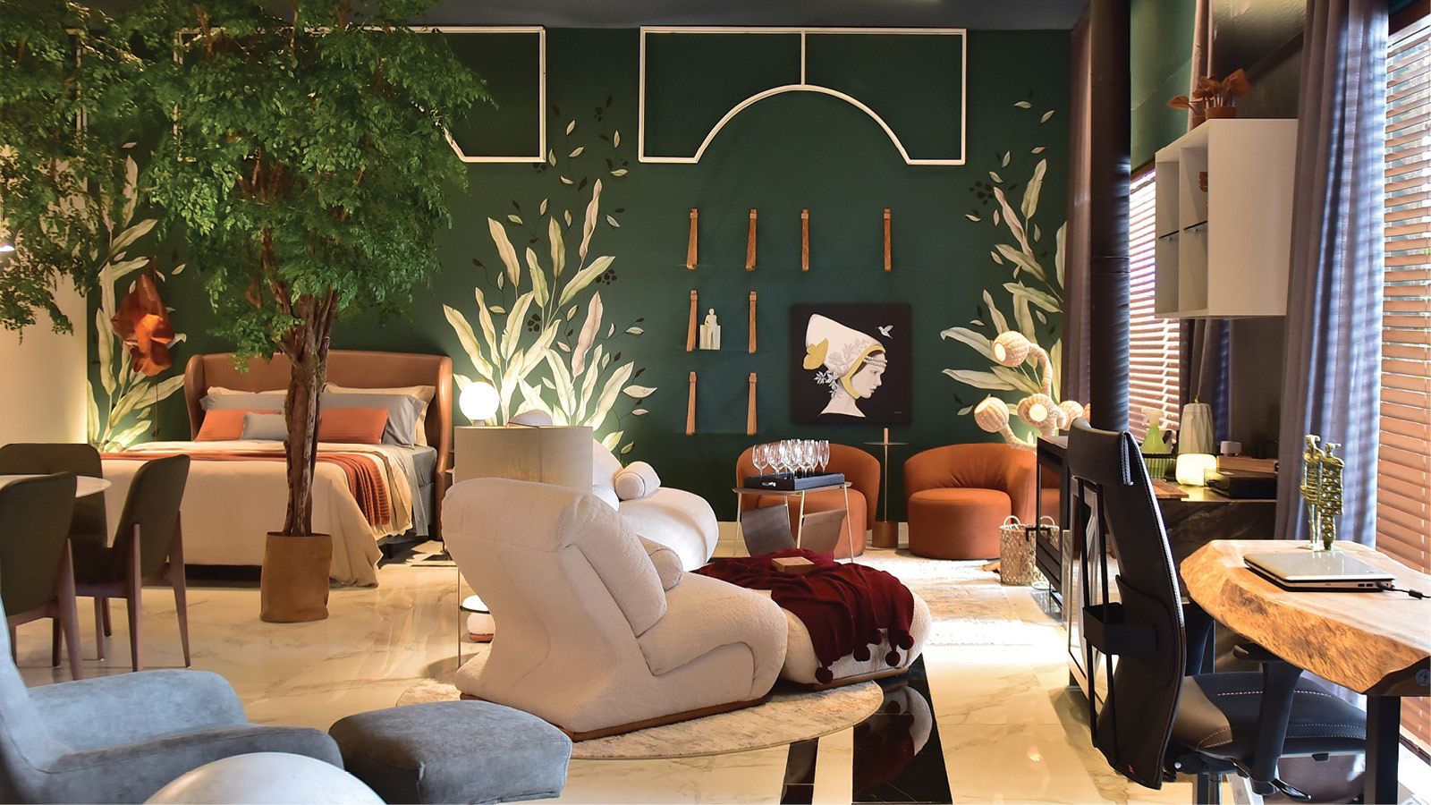 À beira do Guaíba, o Loft do Médico - Refúgio e Reconexão, projeto dos arquitetos curadores da Mostra Elite Design 2022, Cezar Etienne M. de Araújo e Jaqueline Zarpellon de Araújo, é baseado na neurociência aplicada à arquitetura e princípios do design biofílico, trazendo diferentes sensações, apurando os 5 sentidos.