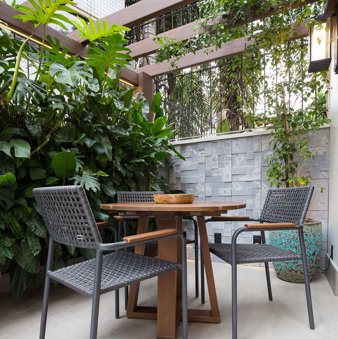 Apartamentos garden são um convite a desfrutar a vida! Neste projeto, as arquitetas Tania Bertolucci e Carolina Nuernberg do escritório Tania Bertolucci de Souza |Arquitetos Associados escolheram móveis Saccaro para a área externa, com o propósito de trazer acolhimento e relax para o drink no final da tarde ou o café nas manhãs ensolaradas de outono.