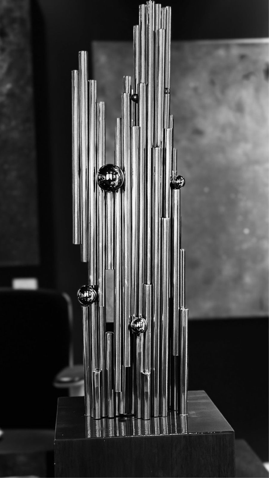 O material, conhecido por sua durabilidade e brilho, simboliza resiliência, força e clareza — características que ecoam nos temas universais explorados em sua arte, como ascensão, unidade e colaboração.