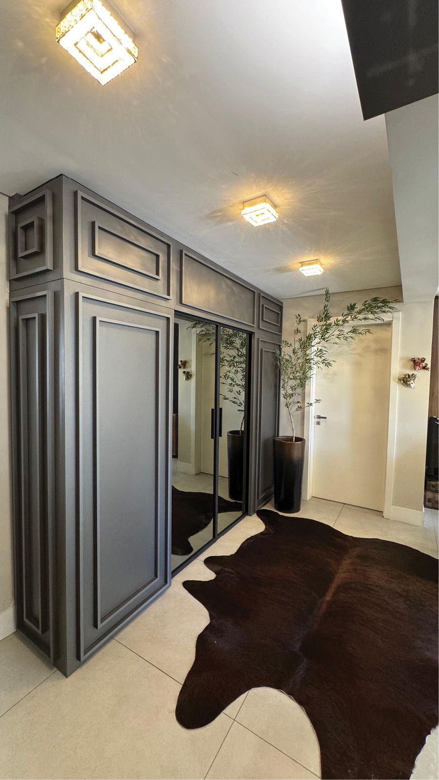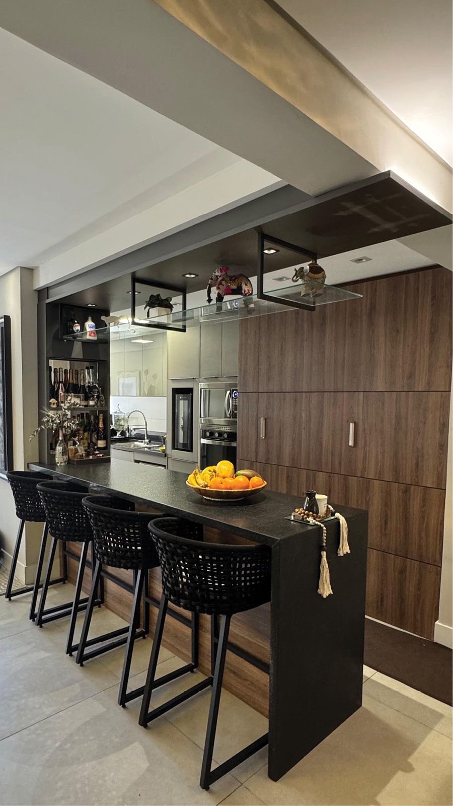 Os móveis planejados e o revestimento em madeira são da Evviva. Os tons de cinza em contraste com a madeira de tom mais quente trazem uma modernidade sofisticada, enquanto a marcenaria de alta precisão garante funcionalidade e aproveitamento inteligente dos espaços. O resultado é um projeto que vai além da beleza visual: ele traduz a essência da boa arquitetura, na qual cada parceiro contribuiu para materializar um espaço que acolhe, inspira e encanta.