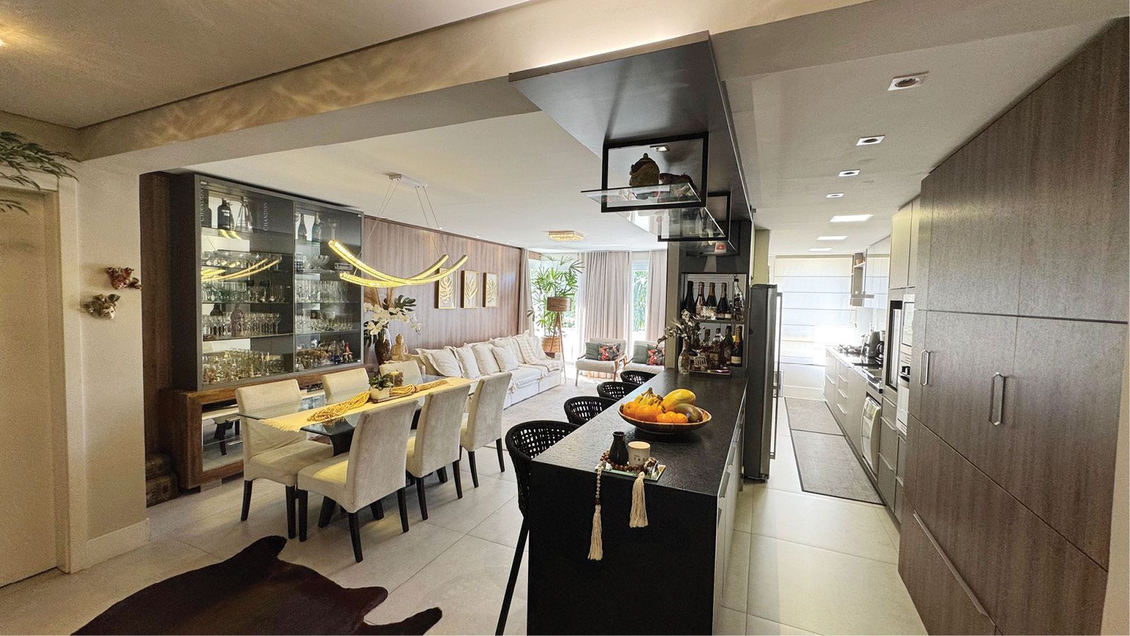 Neste projeto do arquiteto Carlos Lemos, em Porto Alegre/RS, a escolha cuidadosa de materiais, texturas e mobiliários resultou em um espaço sofisticado, acolhedor e atemporal. O diálogo entre a luz natural, as linhas contemporâneas e os elementos naturais trouxeram equilíbrio e leveza ao ambiente.