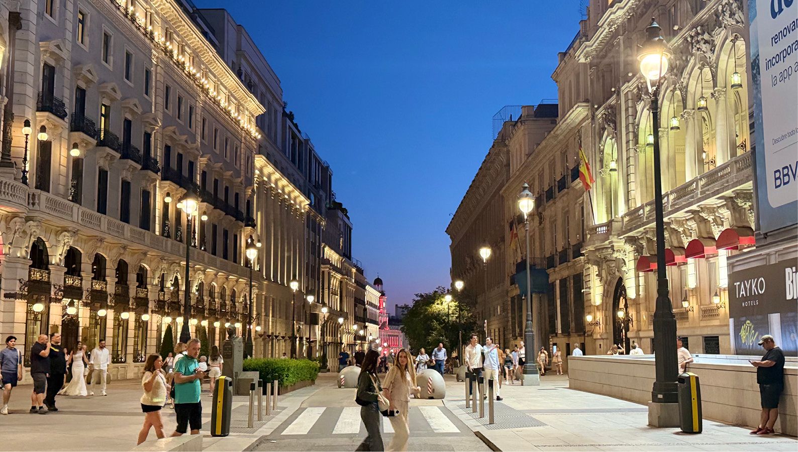 ¥ Madrid Nossa jornada começou por Madrid, uma cidade que nos surpreendeu: incrivelmente limpa e linda, ela consegue preservar sua alma vibrante enquanto abraça a contemporaneidade. Essa harmonia é perceptível em sua rica gastronomia, no charme de suas lojas e na exuberância de seus parques. Em apenas três dias, exploramos quase todos os clássicos: do grandioso Museu do Prado ao Parque do Retiro (onde, de bike elétrica, rodamos e nos divertimos por todo o parque em uma hora!). Não poderia faltar o pôr do sol mágico no Templo de Debod, o “bate perna” pela icônica Gran Vía, Plaza Mayor, Plaza del Sol, além de mergulhos nos charmosos barrios Las Letras, Chueca e Salamanca.